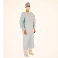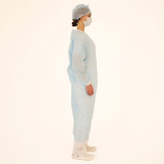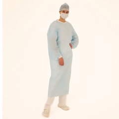 Состав: 1. Халат хирургический 140 см, рукава с манжетой, размер 52-54, спанбонд пл. 42 г/м², голубого цвета – 1 шт. 2. Шапочка «Колпак», спанбонд пл. 42 г/м², голубого цвета – 1 шт. 3. Маска медицинская на резинке, трехслойная, голубого цвета – 1 шт.