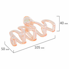 Тип товара: краб для волос, Форма: волна, Тип покрытия: перламутровый, Цвет: розовый, Декор: нет, Количество в наборе: 1 шт., Размер: 10,5 см, Материал: полистирол, Серия: -, Упаковка: картонная карточка с европодвесом.