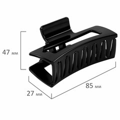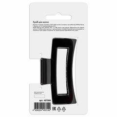 Тип товара: краб для волос, Форма: геометрическая глянцевая, Тип покрытия: глянцевый, Цвет: черный, Декор: нет, Количество в наборе: 1 шт., Размер: 8,5 см, Материал: ABS-пластик, Серия: -, Упаковка: картонная карточка с европодвесом.
