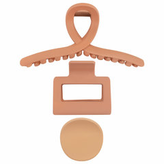 Тип товара: набор крабов для волос, Форма: ассорти, Тип покрытия: soft-touch, Цвет: светло-коричневый, Декор: нет, Набор: да, Количество в наборе: 3 шт., Размер: 4 / 5 / 11 см, Материал: полистирол, Серия: -, Упаковка: картонная карточка с европодвесом.