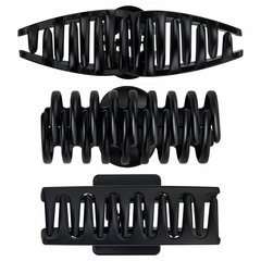 Крабы для волос НАБОР 3 шт., 8,5 см / 8,5 см / 11 см, soft-touch, чёрный, MONTE VITA (МОНТЕ ВИТА), 457032