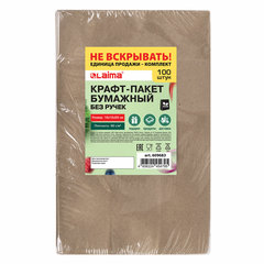 Крафт-пакет бумажный 18х12х29 см, КОМПЛЕКТ 100 шт., плотность 90 г/м2, LAIMA ECO CRAFT, 609683