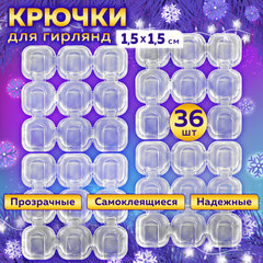 Крючки самоклеящиеся для гирлянд и проводов 1,5х1,5 см, КОМПЛЕКТ 36 шт., LAIMA Home, 608796