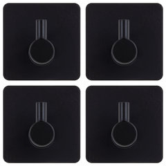 Крючки самоклеящиеся универсальные 4,5x4,5 см, КОМПЛЕКТ 4 шт., сталь, черные, LAIMA Home, 608786