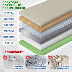 Легко крепятся на кафельную, стеклянную и любую другую гладкую, твердую и ровную поверхность. Позволяют обойтись без сверления стен. Благодаря прозрачной ПВХ-основе впишутся в любой интерьер. При необходимости ПВХ-основу можно разрезать или сгибать для более удобного использования.