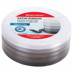 Лента атласная ширина 6 мм, СЕРЫЙ СПЕКТР набор 5 цветов по 23 м, BRAUBERG, 591497