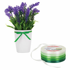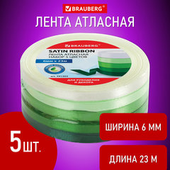 Атласная лента является универсальным текстильным изделием, что обусловлено широкой сферой ее использования. Набор лент атласных BRAUBERG предназначен для оформления подарков, рукоделия, декора, а также используется во флористике для оформления букетов.Изделие представляет собой набор из атласных лент, изготовленных из 100% полиэстера, с ткаными кромками на обоих краях. Кромка на краях лент выполнена с применением полиэстеровой нити. Ленты изготовлены с применением саржевого способа переплетения нитей. В набор входит 5 лент зеленых оттенков от светло-зеленого до насыщенного зеленого цвета шириной 6 мм (± 3%) и длиной 23 м. Каждая лента намотана на втулку из пенополистирола. Набор лент упакован в термоусадочную пленку, содержащую этикетку с краткой информацией о товаре. Ширина ленты: 6 мм, Длина: 23 м, Количество в комплекте: 5 шт., Количество цветов: 5, Цвет: зеленый, Материал: полиэстер, Особенности: спектр цвета. Код: 591493