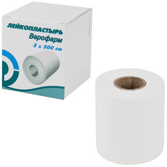 Лейкопластырь рулонный ВЕРОФАРМ, 5х500 см, тканевая основа, картонная коробка, 20024114
