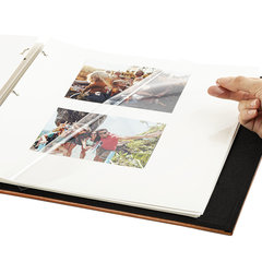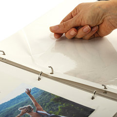 Для того, чтобы разместить фотографии на магнитной странице, необходимо отклеить пленку и разложить фотографии поверх клеевого покрытия. После размещения фотографий надо их закрыть пленкой так, чтобы не было пузырьков воздуха, складок и заломов. Когда пленка опускается обратно, она снова фиксируется на клеевой слой – таким образом, возникает эффект магнита.