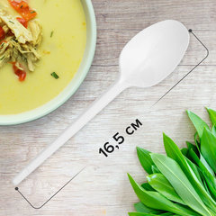 Тип товара: ложка столовая, Назначение: для холодного и горячего, Длина: 165 мм, Соответствует требованиям ГОСТа: ГОСТ Р 50962-96, Материал: полистирол, Товар относится к сегменту ЭКОНОМ: да, Количество в упаковке: 100 шт., Цвет: белый, Компакт-упаковка: да.