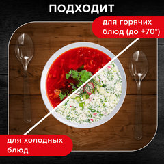 Одноразовые столовые ложки LAIMA используются в офисе, на предприятиях общественного питания, в дороге и быту.Изготовлены из высококачественного пищевого жесткого полистирола прозрачного цвета, поэтому приборы легкие и безопасные в использовании. Подойдут как для холодных, так и для горячих (до +70°) блюд. Длина – 180 мм. В комплекте 48/50 штук. Тип товара: ложка столовая, Назначение: для холодного и горячего, Длина: 180 мм, Соответствует требованиям ГОСТа: ГОСТ Р 50962-96, Материал: полистирол, Количество в упаковке: 48 шт., Цвет: прозрачный. Код: 602654