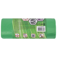 Объем: 60 л, Цвет: зеленый, Прочность: стандартная, Количество в комплекте: 20 шт., Толщина полиэтилена: 10 мкм, Материал: ПНД раздельный сбор, Тип дна: звезда, Тип упаковки: рулон, Соответствует требованиям ГОСТа: ГОСТ 12302-2013, Ширина: 58 см, Длина: 68 см.