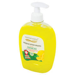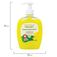 Мыло-крем жидкое 500 г ЗОЛОТОЙ ИДЕАЛ "Лимон", с антибактериальным эффектом, дозатор, 606786