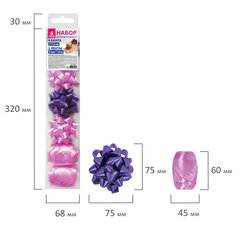 Набор для декора и подарков 4 банта, 2 ленты, цвета: розовый, фиолетовый, ЗОЛОТАЯ СКАЗКА, 591847