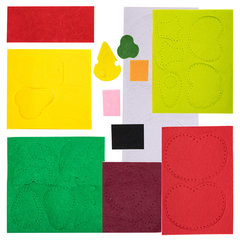 Ребенку не понадобятся клей, ножницы и другие дополнительные приспособления. Благодаря перфорированным отверстиям и пластиковой игле ребенок сможет сделать игрушку легко и безопасно своими руками.