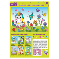 Сверкающая мозаика из мягкого пластика EVA ЮНЛАНДИЯ "Единорог" - это весёлый и занимательный способ развития мелкой моторики, аккуратности и цветового восприятия ребёнка. Все элементы в составе самоклеящиеся, для работы не требуются ножницы и клей.В набор входит яркая картонная основа размером 21х29 см с напечатанным дизайном аппликации, а также 5 листов мягкого пластика разных цветов с голографическим эффектом. Белыми пронумерованными квадратиками на картинке обозначены места, куда необходимо приклеить элементы соответствующего цвета. Схема соответствия номеров и цветов расположена на бумажном вкладыше.
