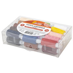 Цвета ниток в наборе могут незначительно отличаться от представленных на фото. Тип ниток: швейные, Серия: Швейные , Количество цветов: 30, Длина намотки: 200 м, Материал ниток: 40 ЛШ, 100% полиэфир, Разрывная нагрузка: 1.47 кгс, Линейная плотность: 42 текс, Цвет: ассорти. Код: 662787