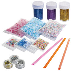Набор слаймов с аксессуарами ЮНЛАНДИЯ - это отличное развлечение для детей. Кроме готовых слаймов, в набор входят пенопластовые шарики, блестки и другие аксессуары для создания своего уникального слайма. Не липнут к рукам, не пачкаются, не токсичны.В набор входят 12 слаймов в баночках весом 50-55 грамм, 3 пакетика с пенопластовыми шариками различных цветов, 1 пакетик с пластиковыми фруктиками, 3 пакетика с бусинами, 3 тубы с блёстками различных цветов, 3 баночки с блестящими звездочками, а также трубочки для надувания слаймов.