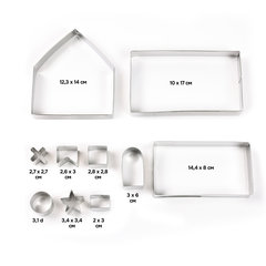 Внутри яркой подарочной коробки вас ждёт подробный рецепт приготовления пряничного домика – от замешивания теста до финального украшения глазурью. Тип товара: формы для печенья, Размер: ассорти см, Количество в комплекте: 10 шт., Цвет: серебристый, Дизайн: пряничный домик. Код: 592493