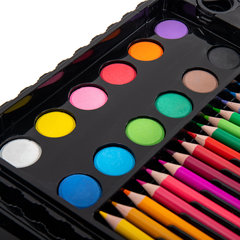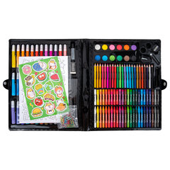 В набор входят: высококачественные цветные карандаши – 24 цвета; яркие восковые мелки – 24 цвета; восковые карандаши – 24 цвета; удобные мини-фломастеры – 36 цветов; насыщенные акварельные краски – 12 цветов; скрепки – 20 штук; чернографитный карандаш – 1 штука; кисть из синтетики – 1 штука; палитра – 1 штука; раскраски – 5 листов; ластик – 1 штука; наклейки – 15 штук, точилка – 1 штука; линейка – 1 штука; пластиковые безопасные ножницы – 1 штука; степлер – 1 штука; клей – 1 штука; раскладывающийся кейс с красочным дизайном. Назначение: для рисования и творчества, Количество в комплекте предметов: 170 шт., Цвет кейса: разноцветный, Упаковка: короб из гофрокартона. Код: 665672
