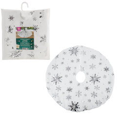 Новогодний коврик под елку белый c серебристыми снежинками, 60 см, полиэстер, ЗОЛОТАЯ СКАЗКА, 592158