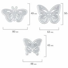 Ножи для вырубки и тиснения ОСТРОВ СОКРОВИЩ - это фигурные стальные ножи, предназначенные для использования с машинкой для вырубки и тиснения ОС-5. С их помощью можно создавать вырубки из различных материалов, а также эмбоссировать полученные изделия.В набор входит 3 стальных ножа в форме бабочек, с максимальным размером 121х118 мм. Ножи многофункциональны: каждый из них позволяет создать вырубку и эффект тиснения. Материалы, подходящие для работы - бумага, картон, алюминиевая фольга для рукоделия, фоамиран и другие.