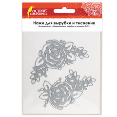 Ножи для вырубки и тиснения ОСТРОВ СОКРОВИЩ - это фигурные стальные ножи, предназначенные для использования с машинкой для вырубки и тиснения ОС-5. С их помощью можно создавать вырубки из различных материалов, а также эмбоссировать полученные изделия.В набор входит 2 стальных ножа в форме цветущих роз размером 110,8х113 мм. Ножи многофункциональны: каждый из них позволяет создать вырубку и эффект тиснения. Материалы, подходящие для работы - бумага, картон, алюминиевая фольга для рукоделия, фоамиран и другие.