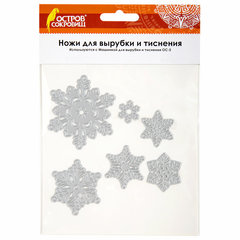 Ножи для вырубки и тиснения ОСТРОВ СОКРОВИЩ - это фигурные стальные ножи, предназначенные для использования с машинкой для вырубки и тиснения ОС-5. С их помощью можно создавать вырубки из различных материалов, а также эмбоссировать полученные изделия.В набор с общим размером 112х128 мм входит 6 стальных ножей в виде снежинок различных форм и размеров. Ножи многофункциональны: каждый из них позволяет создать вырубку и эффект тиснения. Материалы, подходящие для работы - бумага, картон, алюминиевая фольга для рукоделия, фоамиран и другие.