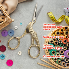 Ножницы для вышивания и рукоделия ОСТРОВ СОКРОВИЩ – изящный инструмент для рукоделия, который отлично подходит для работы с тканями, раскройных работ. Особо острые лезвия легко разрезают нитки разного вида.Фигурные металлические ножницы в виде цапли от ОСТРОВ СОКРОВИЩ удобны при обрезке нитей и могут быть использованы для любого вида вышивания. Лезвия выполнены из нержавеющей стали. Общая длина ножниц составляет 120 мм.