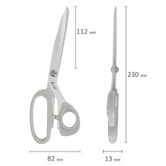 Длина: 230 мм, Тип ножниц: портновские, Цвет: серый, Ручки: эргономичные, Материал ручек: пластик, Материал лезвия: нержавеющая сталь, Длина лезвий: 100 мм, Упаковка: блистер с европодвесом.