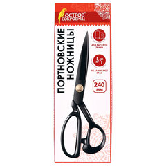 Ножницы портновские 240 мм, КЛАССИЧЕСКИЕ, черные, ручки с силиконовым покрытием, ОСТРОВ СОКРОВИЩ, 665598