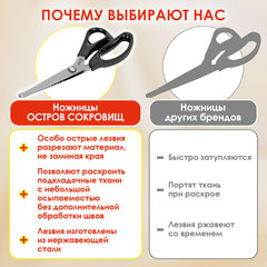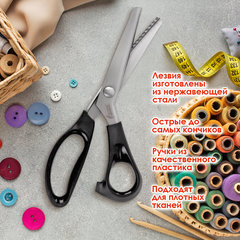 Ножницы портновские ФИГУРНЫЕ ЗИГЗАГ 240 мм, черные, пластиковые ручки, ОСТРОВ СОКРОВИЩ, 665600