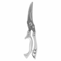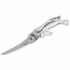 Ножницы отлично подойдут для разделки и чистки рыбы, мяса птицы, нарезки овощей и зелени. Будут эффективны при резке проводов и кабелей, а также справятся с подрезкой комнатных и садовых растений. Тип : ножницы-секатор, Длина: 260 мм, Количество функций: 2 шт., Функционал: зазубренные лезвия, Материал ручек: алюминий, Цвет ручек: серебристый, Материал лезвия: сталь, Длина лезвий: 140 мм, Серия: Kitchen, Упаковка: блистер с европодвесом. Код: 608902