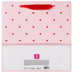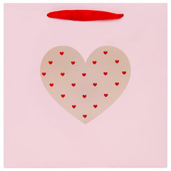 Изготовлен из ламинированного мелованного картона с ленточными ручками из полиэстера. Размер – 20x20x8 см. Пакет выполнен в пастельно-розовом цвете. С лицевой стороны пакета - прозрачное "окно" в виде сердца, на котором размещены маленькие красные сердечки с голографическим эффектом. Формат: вертикальный, Вид пакета: штучный, Дизайн: сердце, Материал: мелованный картон, Количество в комплекте: 1 шт., С рисунком: да, Цвет: пастельно-розовый, Размер пакета: 20х20х8 см, Формат размера пакета: M (квадратный). Код: 608255