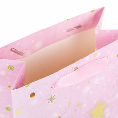 Изготовлен из ламинированного мелованного картона с ленточными ручками из полиэстера. Размер – 18x10x23 см. Пакет выполнен в розовом и золотистом цветах с изображением праздничных новогодних атрибутов. С лицевой стороны пакета некоторые детали покрыты тиснением золотистой фольгой. Вид пакета: вертикальный, Количество в комплекте: 1 шт., Дизайн: Lilac Story, Материал: мелованный картон, Эффект: фольга, С рисунком: да, Цвет: светло-розовый, Тип: новогодний, Размер пакета: M (18x10x23) см. Код: 608233