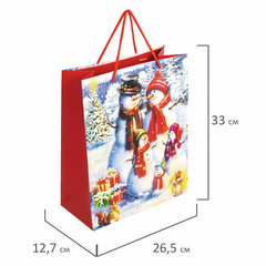 Пакет подарочный (1 штука) новогодний 26x13x32 см, ЗОЛОТАЯ СКАЗКА "Snowman", глиттер, 608232