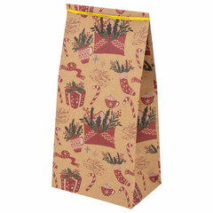 Подарочный пакет новогодний изготовлен из крафт-бумаги. Комплект включается в себя твист-ленты из золотистой фольги с тонким стержнем из проволоки внутри (используются как зажим для пакетов). С их помощью будет удобно фиксировать подарочные композиции. Размер – 12х8х25 см. Пакет украшен изображением новогодних атрибутов. Вид пакета: вертикальный, Количество в комплекте: 10 шт., Дизайн: Новогодний подарок, Материал: крафт, Эффект: отсутствует, С рисунком: да, Цвет: крафт, Тип: новогодний, Размер пакета: 12х8х25 см. Код: 592123
