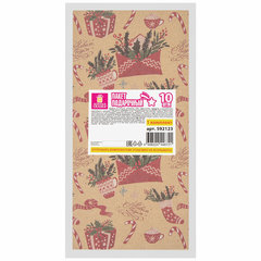 Пакет подарочный КОМПЛЕКТ 10 штук новогодний 12х8х25 см с зажимами, "Паттерн № 2", ЗОЛОТАЯ СКАЗКА, 592123