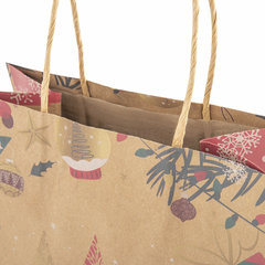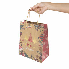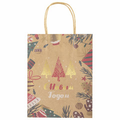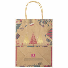 Подарочный пакет новогодний изготовлен из крафт-бумаги, снабжен бумажными ручками. Размер – 18x10x23 см. Пакет украшен изображениями новогодних атрибутов. Вид пакета: вертикальный, Количество в комплекте: 10 шт., Дизайн: Елочки, Материал: крафт, Эффект: отсутствует, С рисунком: да, Цвет: крафт, Тип: новогодний, Размер пакета: M (18x10x23) см. Код: 592125