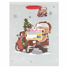 Пакет подарочный КОМПЛЕКТ 4 штуки новогодний 26x13x32 см, "Новогодний мишка", ЗОЛОТАЯ СКАЗКА, 592121
