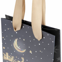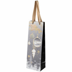 Новогодний подарочный пакет изготовлен из ламинированного мелованного картона, снабжен ленточными ручками из полиэстера. Размер – 12x9x36 см. Пакет украшен изображением новогодних атрибутов. С лицевой стороны пакета некоторые детали покрыты тиснением золотистой фольгой. Вид пакета: вертикальный, Количество в комплекте: 4 шт., Дизайн: Новогодняя тематика, Материал: мелованный картон, Эффект: фольга, С рисунком: да, Цвет: серебристо-серый, Тип: новогодний, Размер пакета: 12х9х36 см. Код: 592135