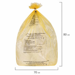 Пакеты для медицинских отходов КОМПЛЕКТ 100 шт., класс Б (желтые) 60 л, 70х80 см, 12 мкм, ПТП "Киль"