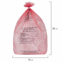 Пакеты для медицинских отходов КОМПЛЕКТ 100 шт., класс В (красные) 60 л, 70х80 см,12 мкм, ПТП "Киль"