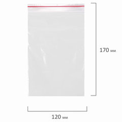 Размер: 120х170 мм, Толщина материала: 35 мкм, Тип: пакет с замком, Количество в упаковке: 100 шт., Материал: полиэтилен высокого давления (ПВД), Цвет: прозрачный.