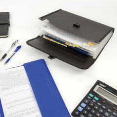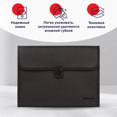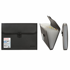 Папка для бумаг и документов с замком и 13 отделениями BRAUBERG "HIT", А4, пластик, черная, 229572