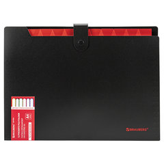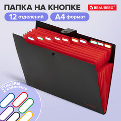 Папка-органайзер на кнопке 12 отделений, BRAUBERG "Extra", А4, черная с красным, 271934