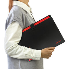 Имеет 12 отделений с ярлыками на разделителях и неоновыми стикерами (в комплекте), что существенно упрощает процесс поиска нужного документа и позволяет структурировать информацию. Удобный и надежный замок-кнопка дает возможность быстро открывать и закрывать папку, не позволяя содержимому выпасть, и защищает его от влаги, пыли и механических повреждений.