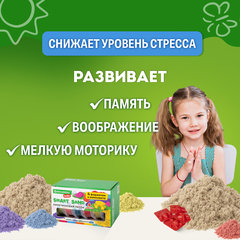 Этот песок не засыхает, не рассыпается, не прилипает к рукам, может долго храниться в плотно закрытой таре, легко собирается с поверхности, и играть с ним можно снова и снова в любое время года.