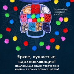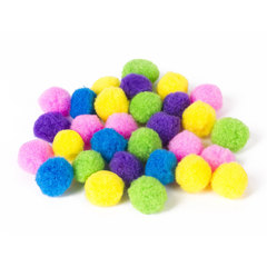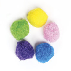 Количество цветов: 5, Цвет: ассорти, Диаметр помпона: 25 мм, Количество в упаковке: 30 шт., Возрастная группа: старше 3-х лет, Материал: полиэстер, Упаковка: пакет с европодвесом, Тип товара: помпоны.