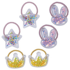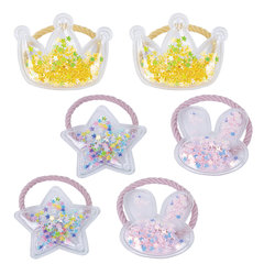 Резинки обеспечивают надежную фиксацию, удобно снимаются, не цепляют и не рвут волосы. Тип товара: резинка для волос, Тип резинки: тонкие, Цвет: ассорти, Декор: звезда, корона, зайчик, Набор: да, Количество в наборе: 6 шт., Размер: 0,3х14 см, Материал: полиэстер, Серия: -, Упаковка: картонная карточка с европодвесом. Код: 457068
